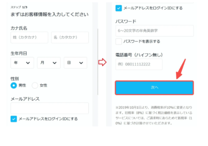 ステップ②:お客様情報(名前・生年月日・パスワードなど)を入力