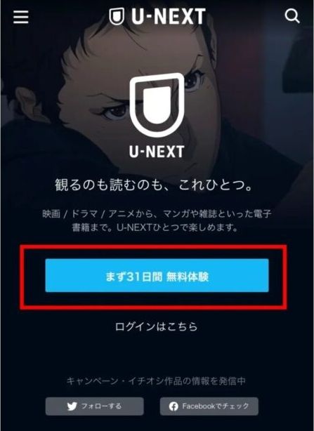 まずは、以下のボタンからU-NEXTの公式キャンペーンページへアクセスします。