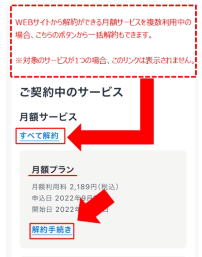 - 解約はアプリの削除ではなく、Webサイトから数タップで簡単に完了する